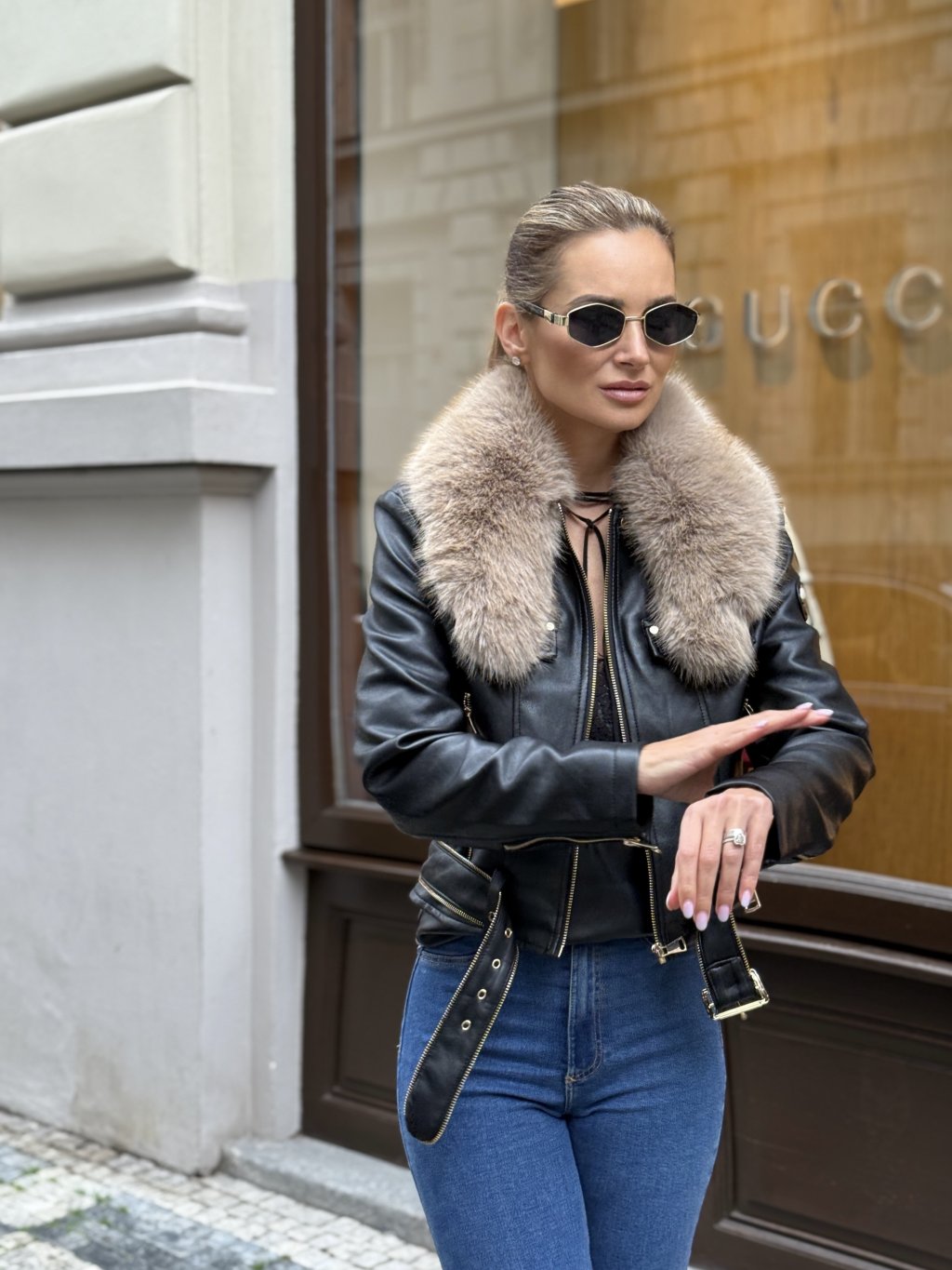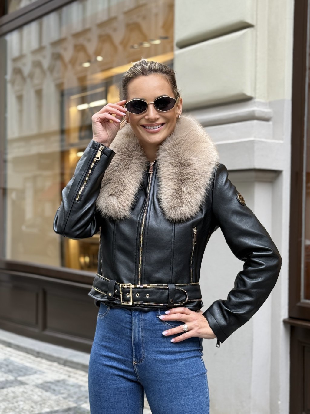 Bunda Aria Noir je ztělesněním elegance, síly a sebevědomí. Krátký střih dokonale zvýrazní postavu a působí žensky i odvážně zároveň. Límec z luxusní imitace kožešiny dodává celému modelu hřejivý a exkluzivní vzhled, zatímco prémiová eko kůže se postará o pohodlí i styl. Zlaté detaily a zipy zvýrazňují její charakter, pásek v pase pak umožní přizpůsobit střih a krásně tvaruje siluetu.
