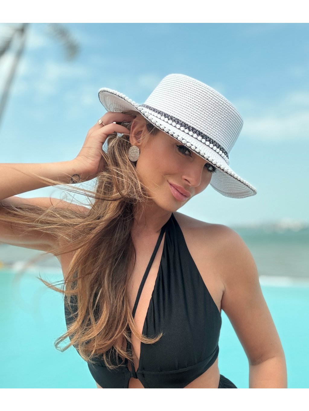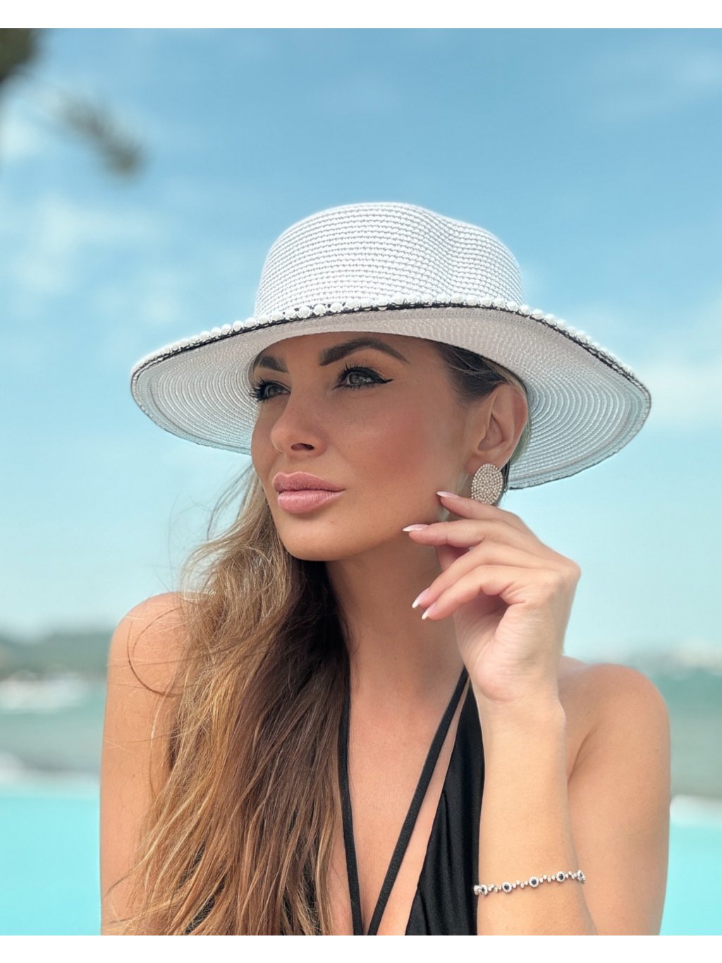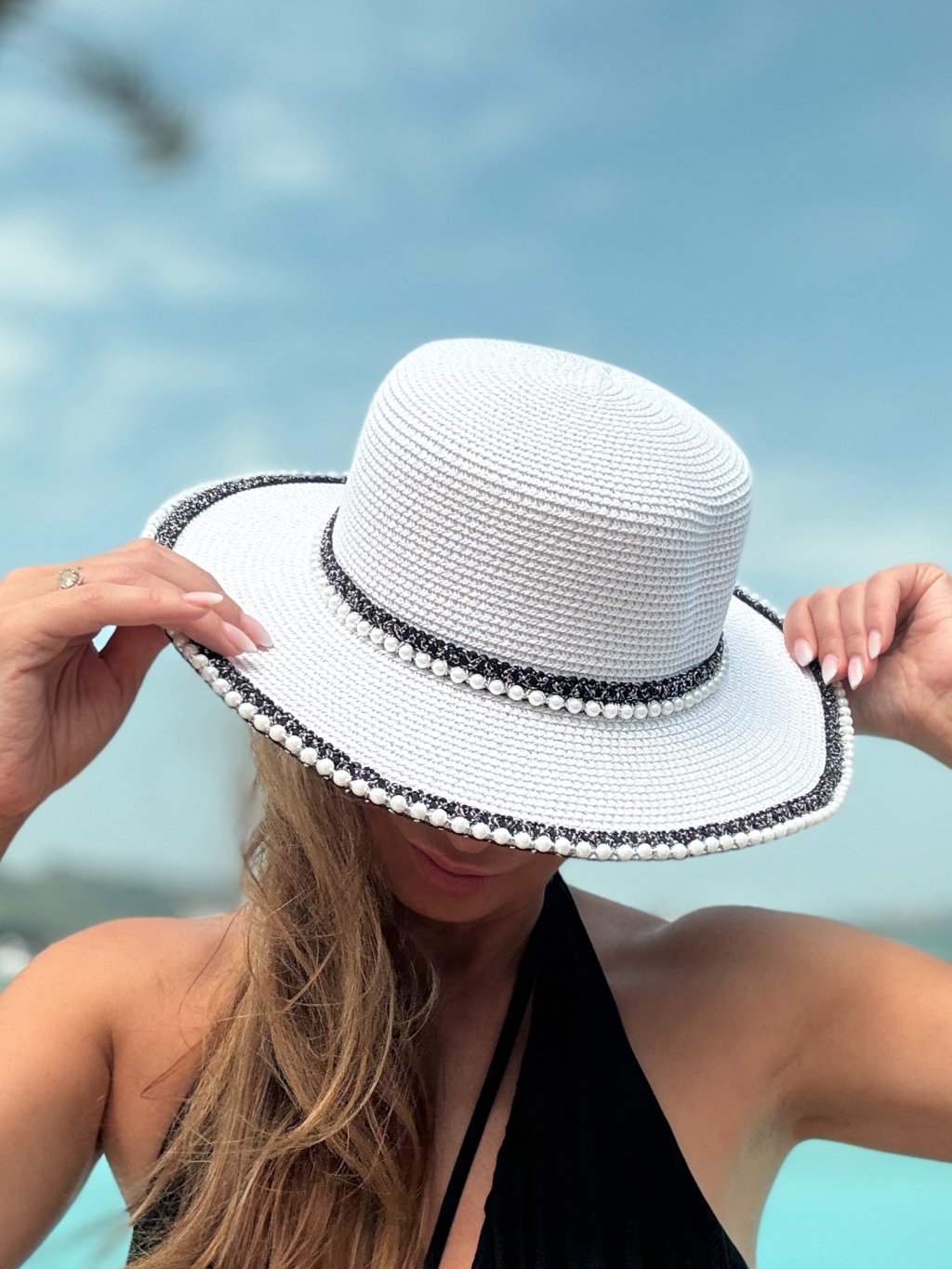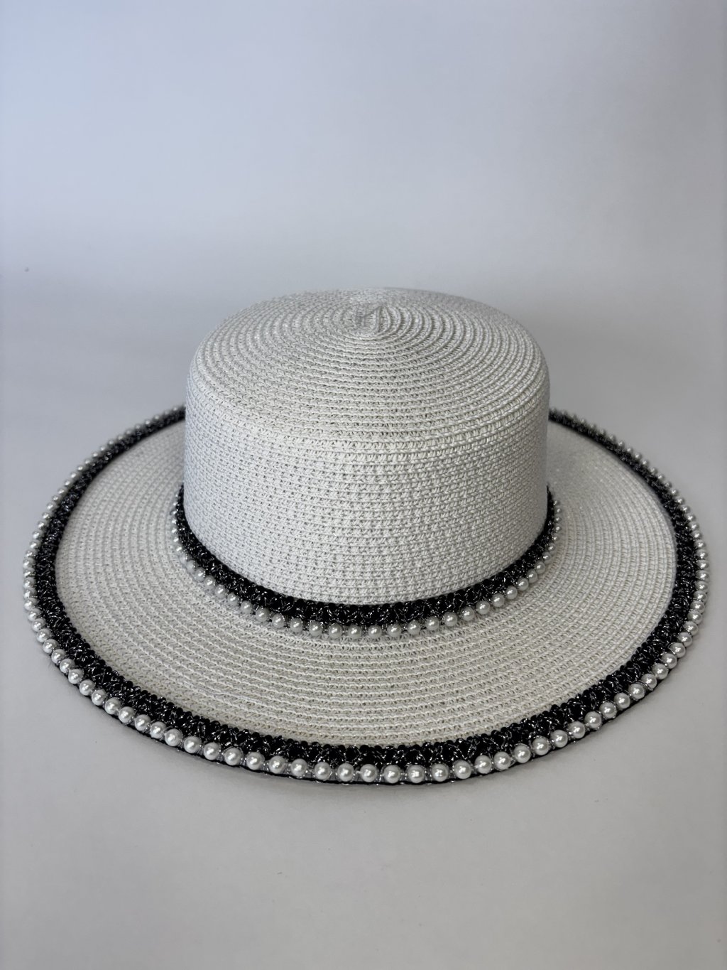 Klobouk Royal v bílé barvě je ztělesněním něžnosti a elegance, doplněný jemnými korálky po obvodu, které mu dodávají sofistikovaný vzhled. Díky možnosti upravit velikost se dokonale přizpůsobí každé hlavě a stane se ideálním doplňkem pro letní dny, zahradní slavnosti nebo plážové chvíle. Jeho univerzální bílá barva a elegantní detaily podtrhnou váš styl a zajistí, že budete vždy vypadat stylově a vkusně.