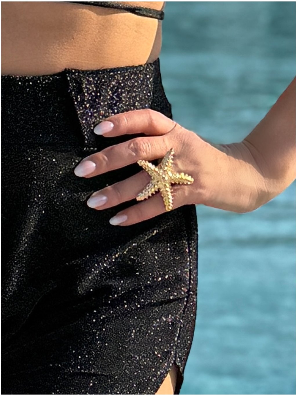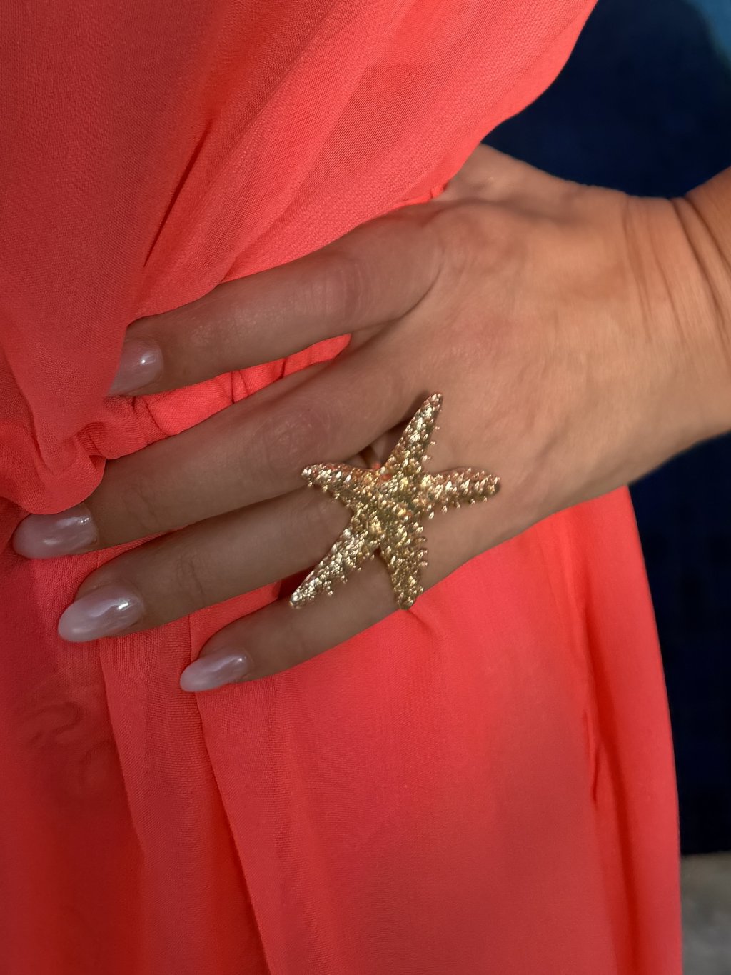 Prsten Starfish ve tvaru mořské hvězdice je stylovým doplňkem, který dokonale zapadne do letních outfitů. Jeho nápaditý design ve zlaté barvě z něj činí jedinečný šperk, který zaujme na první pohled.