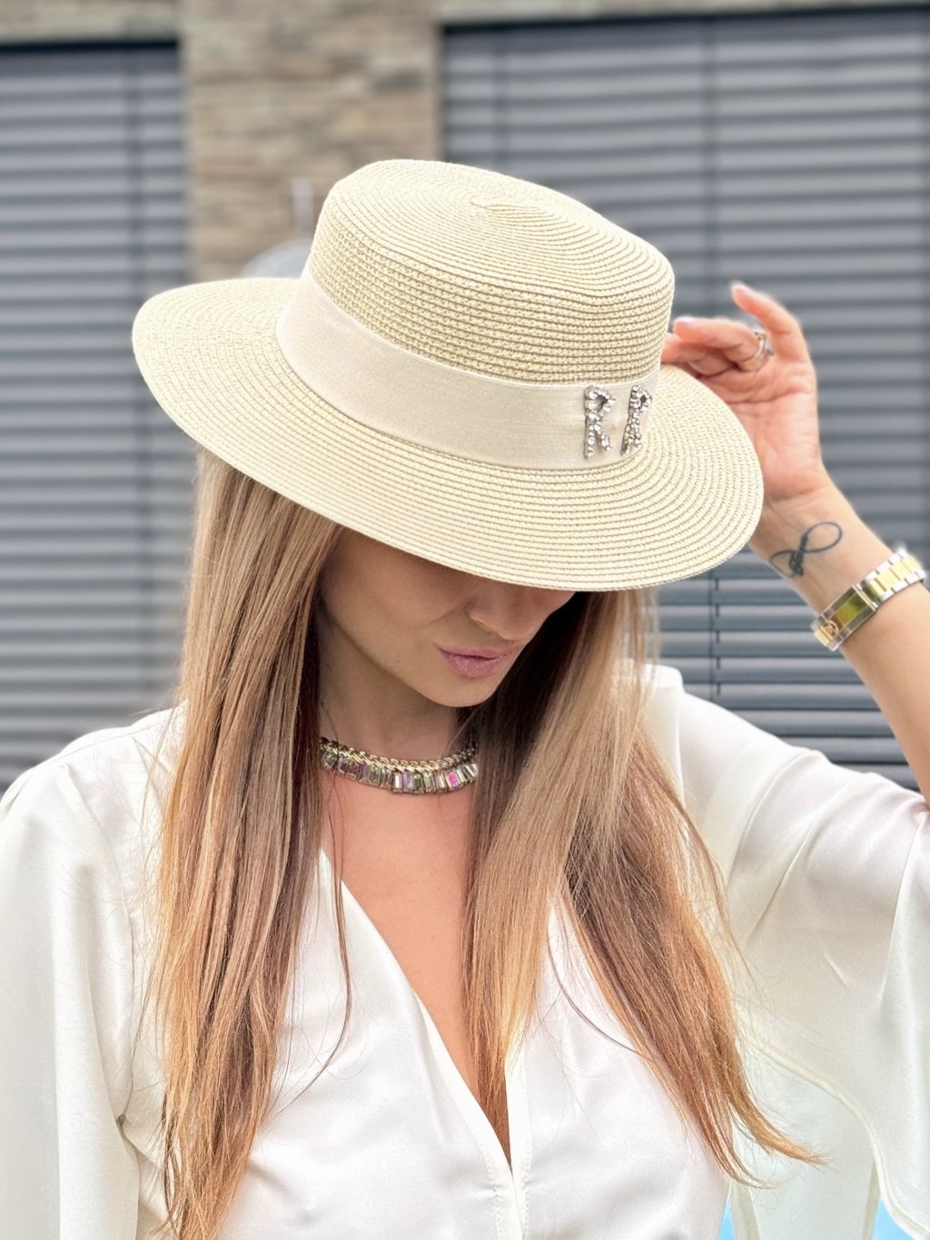 Elegantní béžový slaměný klobouk s krystalickými iniciálami RR, které nesou poselství Relax & Refresh – připomínku, že léto je čas zpomalit, nadechnout se a vychutnat si každý okamžik. Jeho čistý design doplněný širokou stuhou a třpytivým detailem dodá vašemu outfitu nádech luxusu a lehkosti. Perfektně se hodí jak k plavkám u bazénu, tak k lehkým letním šatům na večerní procházku. Lehký a vzdušný, ideální na horké dny, a zároveň must-have doplněk pro ženy, které chtějí propojit eleganci a letní pohodu.